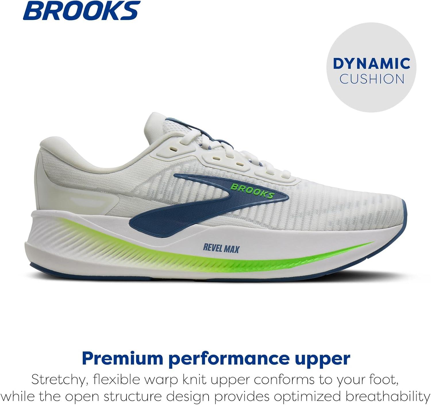 Brooks Men’s Revel Max Neutral Running & Walking Shoe(White/Moonlight/Green Gecko)